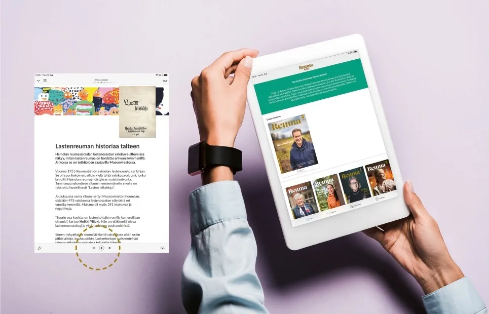 Paperinen Reuma-lehti saa rinnalleen digitaalisen version. Sitä voi lukea kätevästi niin tietokoneella, puhelimella kuin tabletillakin. Jutut voi myös kuunnella.